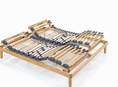 La rete motorizzata Iron Confort Matic ha le doghe in legno di cui le quattro doghe asolate nella zona spalle garantiscono la massima traspirabilità in una delle zone più critiche durante il riposo. I portadoghe in SEBS® ad alta densità rendono uniforme il piano di riposo.